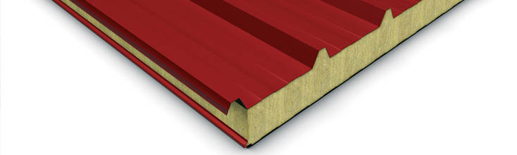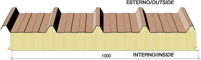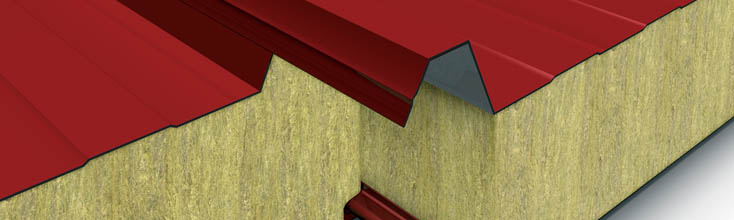 Pre-insulated metal panels with mineral fiber insulation for roofs (also available in the version with perforated internal support).