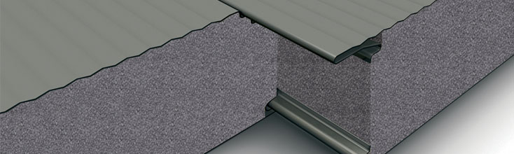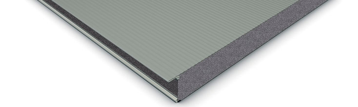 Pre-insulated metal panels in EPS Neopor insulation for walls with hidden joint.